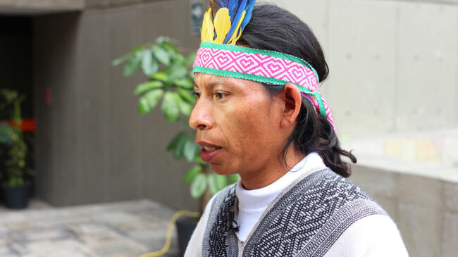 Representante del pueblo Kakinte, en el VII Curso de Traductores e Intérpretes de Lenguas Indígenas. Lima, 2015. Fotografía: Frank Janampa. Archivo: Ministerio de Cultura. KAKINTEFAMILIA ARAWAK Canto de presentación. Intérprete: Jacobo Salazar Torres. 2014. Archivo: Mapa sonoro del Ministerio de Cultura.