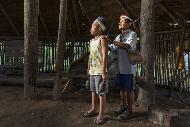 Continuidad. Comunidad Pucaurquillo, 2014. Fotografía: Diego Pérez Romero. BORAFAMILIA BORA Descubre más en: Buscando el azul Canción de ritual bora. 2013. Archivo: Pacto Mundial Consciente; Mapa sonoro del Ministerio de Cultura.