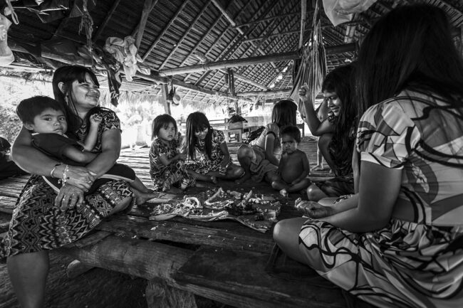 Mujeres amahuaca. Río Purús, Ucayali, 2008. Fotografía: Chris Fagan/Upper Amazon Conservancy. AMAHUACAFAMILIA PANO Descubre más en: Amahuaca siempre Kay pacha 1981 Nokun jiriti, extraído de Amahuaca siempre, de Fernando Valdivia. Comunidad Amahuaca, Nuevo San Martín, 2017. Traducción del audio Nuestra comida Con lo que nos traen para comer, sea pescado o carne, para acompañar, molemos…
