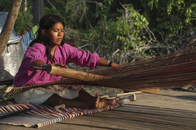 Ana Macusi López. Urarinas, Loreto, 2019. Fotografía: David Salamanca. Archivo: Dirección Patrimonio Inmaterial del Ministerio de Cultura. URARINAFAMILIA SHIMACO Relato de un niño urarina. Archivo: Mapa sonoro del Ministerio de Cultura.